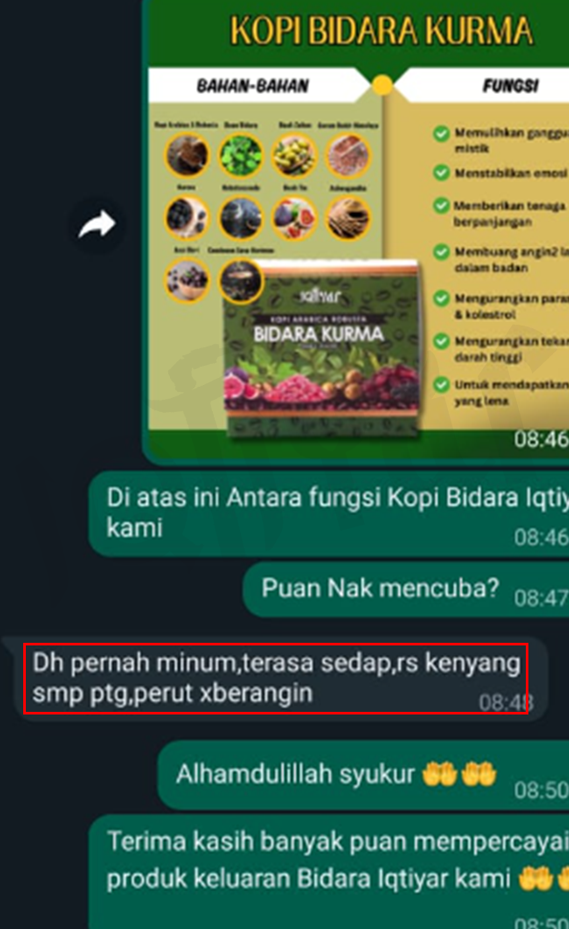 Ini antara kegembiraan pembeli-pembeli Kopi Kurma Bidara kami